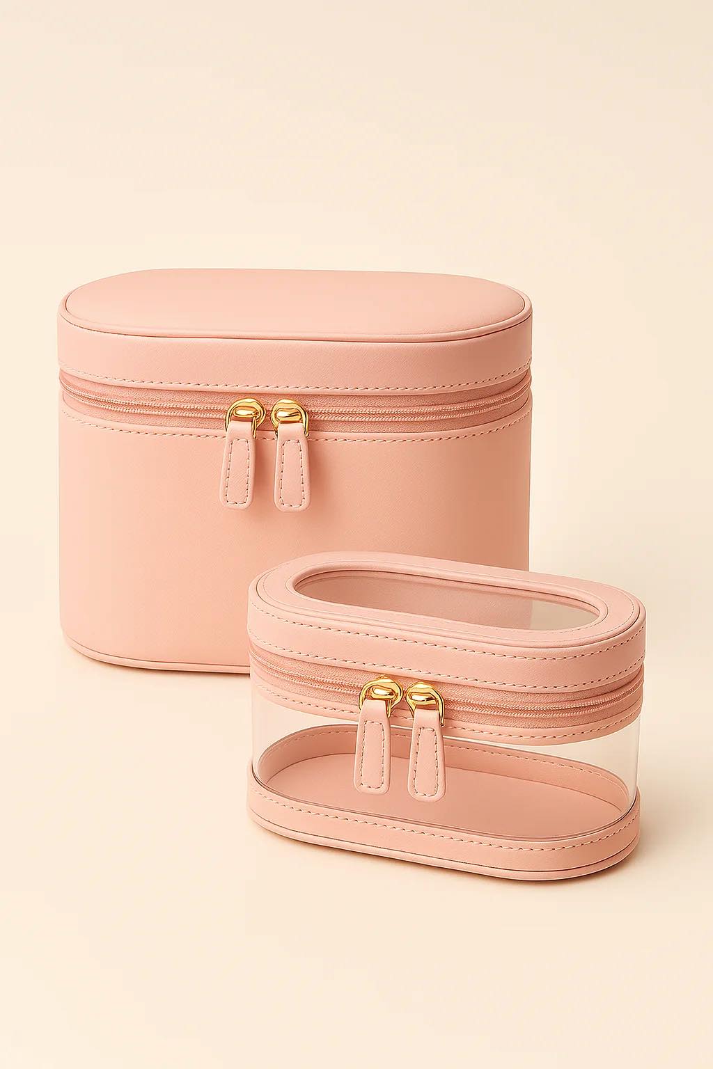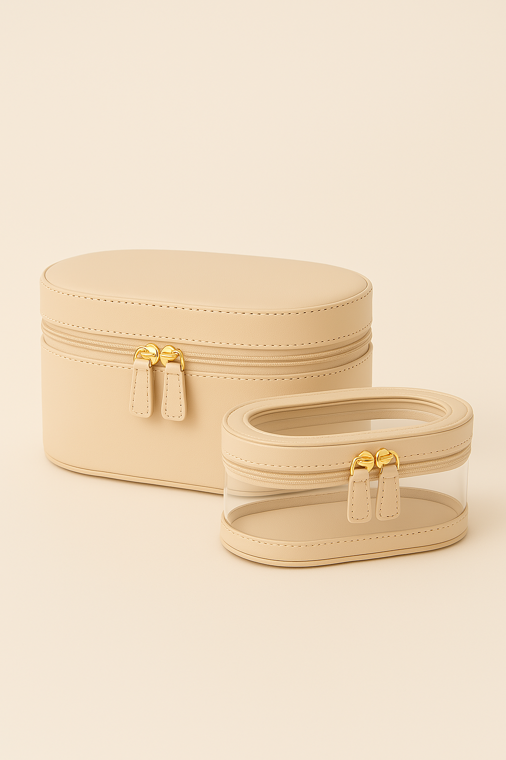 Obie kosmetyczki wyposażone są w podwójne, złote zamki oraz starannie wykończone przeszycia. Dzięki ich kompaktowej formie, lekkości i wysokiej estetyce stanowią nie tylko praktyczne, ale też stylowe uzupełnienie Twojej toaletki lub walizki.